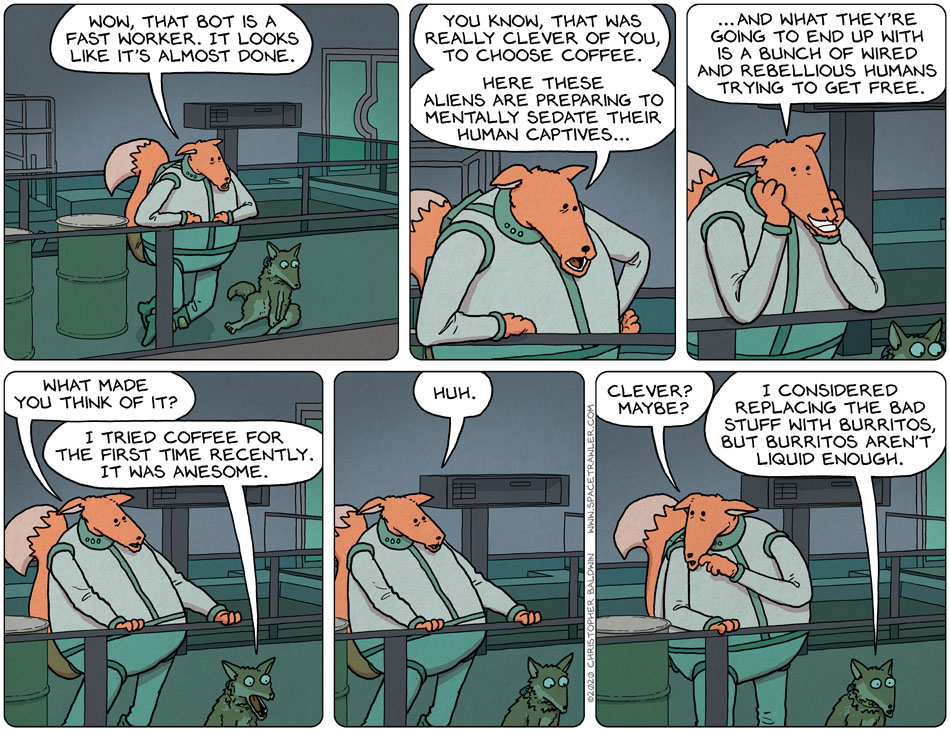 Ever since I posted that, I’ve been thinking about chupaquesos. Rather than possibly expose Christopher to copyright infraction, do a Google search for “schlock mercenary chupaqueso” That will link you to the webcomic where Howard describes how to make one, and to a couple of videos showing them in the making.