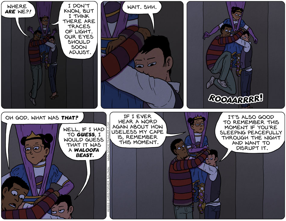 Two humans, and a space princess are trapped in a pit with a waloofa beast, when in walks a simbiote…