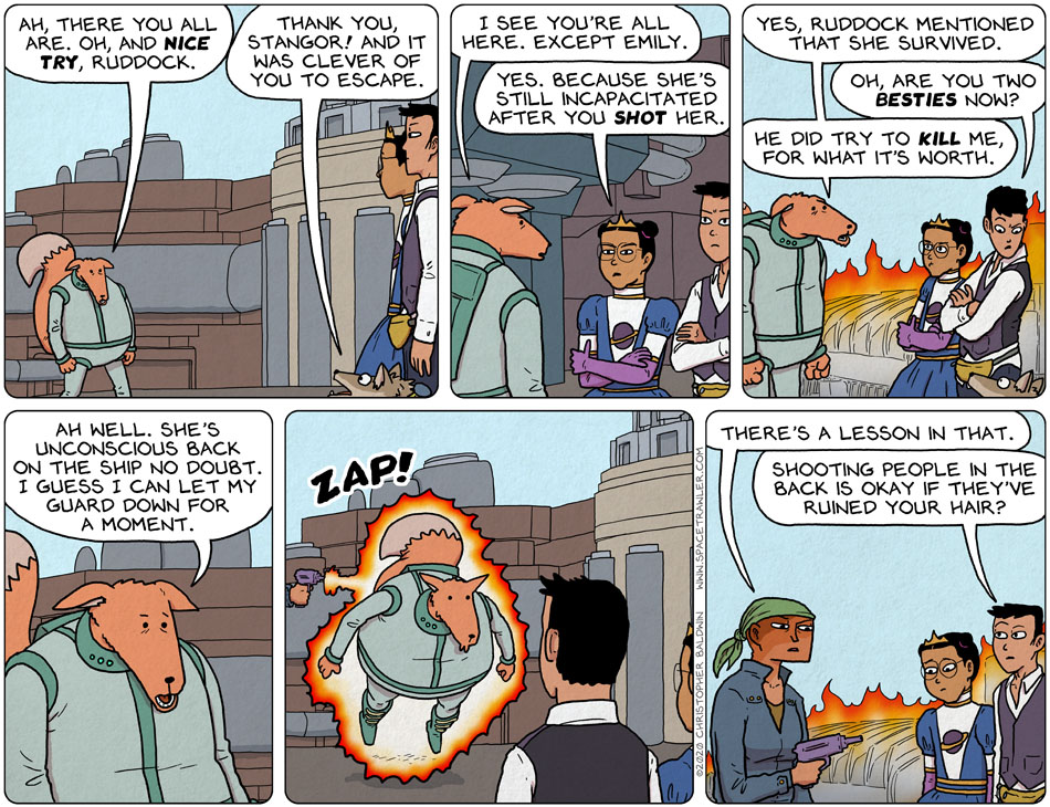 I now see why Stangor has never been successful intercepting Emily before. A crook that dumb doesn’t get a break. But I do hope she got a higher setting than ‘stun’ for her aggravating arrogance.