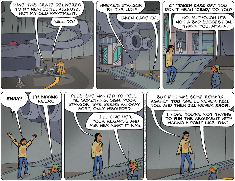 Crate day in the morning! I’m not sure what might be in that crate if not Stangor. I don’t recall Emily shopping all that much on this trip.