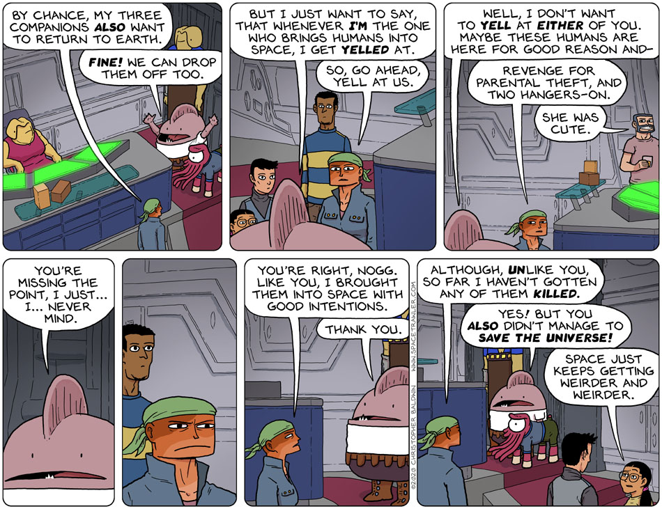 I like this strip. It really shows off Nogg as a man (well, fishman) who just wants a little respect for doing his job and succeeding despite his *overwhelming mediocrity* in the face of great challenge.