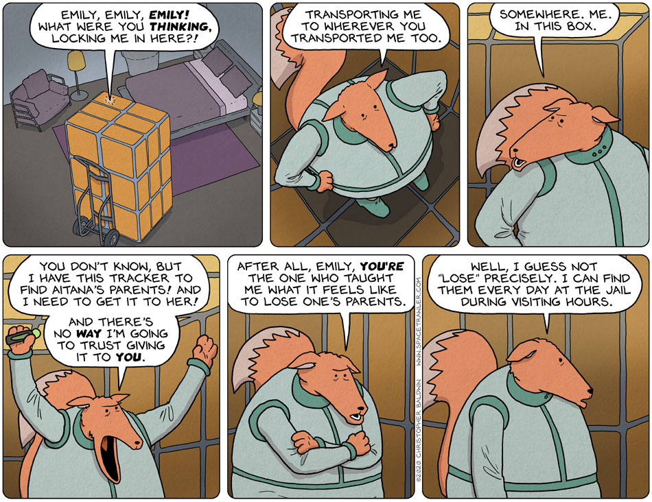 Fox in box. Inside, inside, outside space.