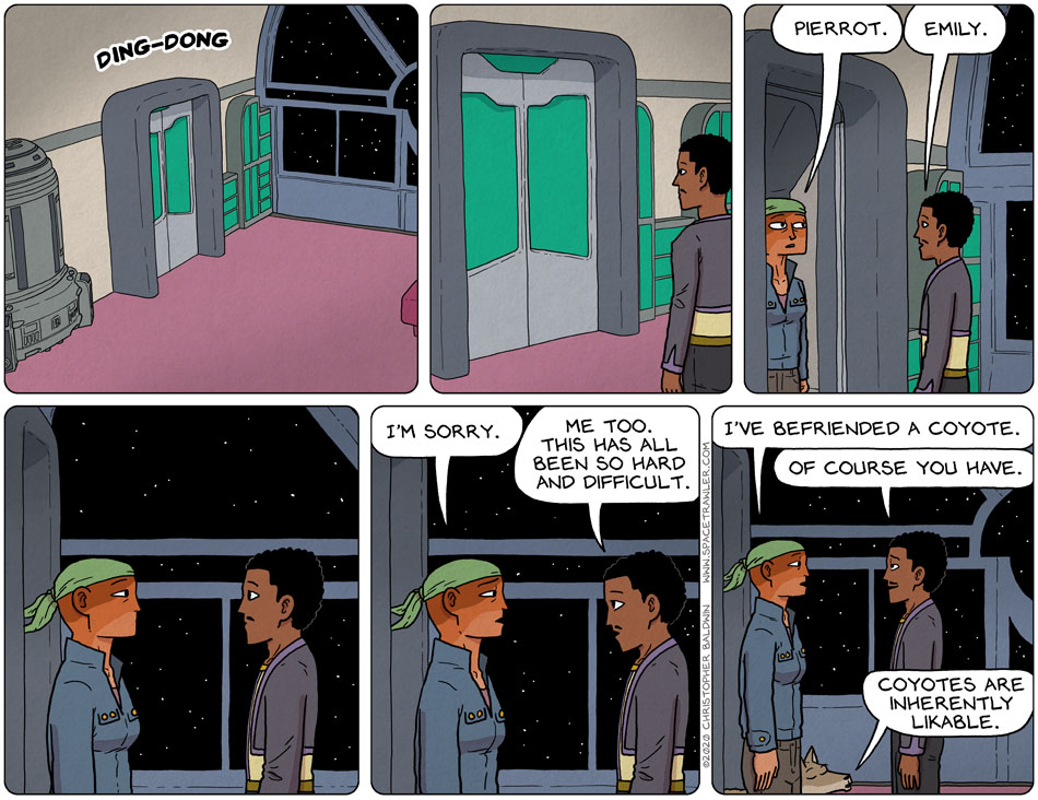 Not to mention the potential for hilarity. I’m imagining Ruddock accidentally becoming some kind of guru for alienated galactic youth, Life of Brian-style.