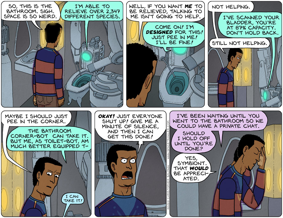 Intellectually I understand. Being the father who taught little boys about the pee pee tree so they would not worry about peeing their pants means…I don’t get the whole body fluid / privacy / aversion thing. Or I’m just a shameless weirdo.
