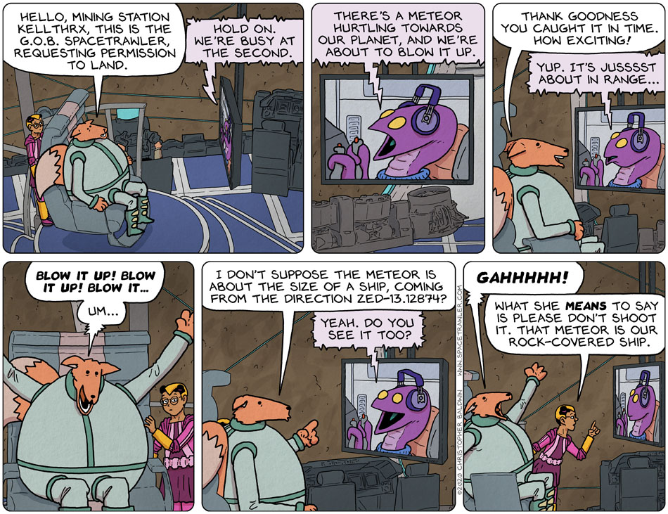 “GAHHHHH!” means “don’t shoot us, it’s our spaceship!” in Stangor’s native language. The written form can’t convey the subtle tone variations needed to transcript the message properly.