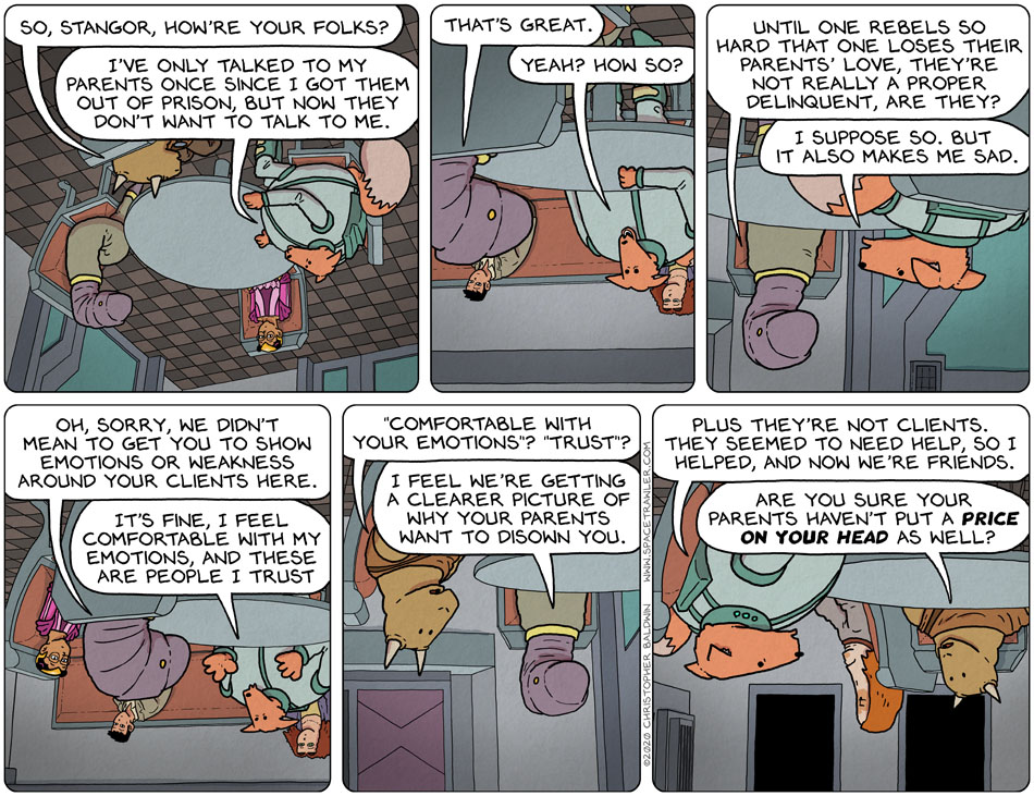 This It am starting a petition to Chris respectfully requesting that he redraws this series of strips upright – but instead shall invert all the other panels of this delightful “outer space” adventure.