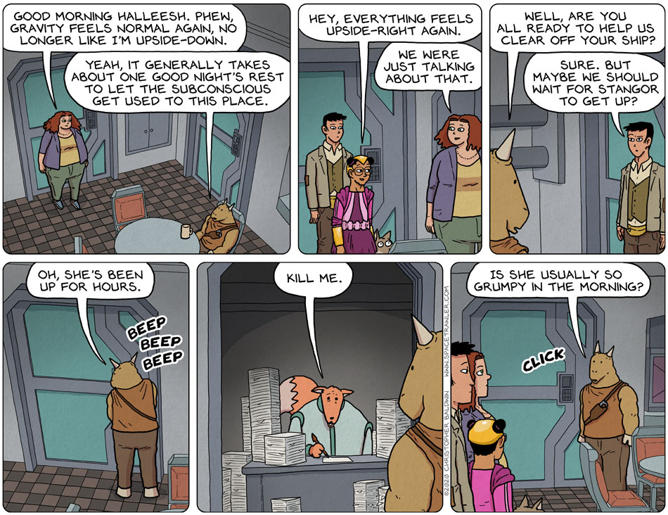 With upside-down gravity now feeling normal, upside-right gravity is going to feel weird when you leave, and it will probably take a similar amount of time for you to get used to it again.