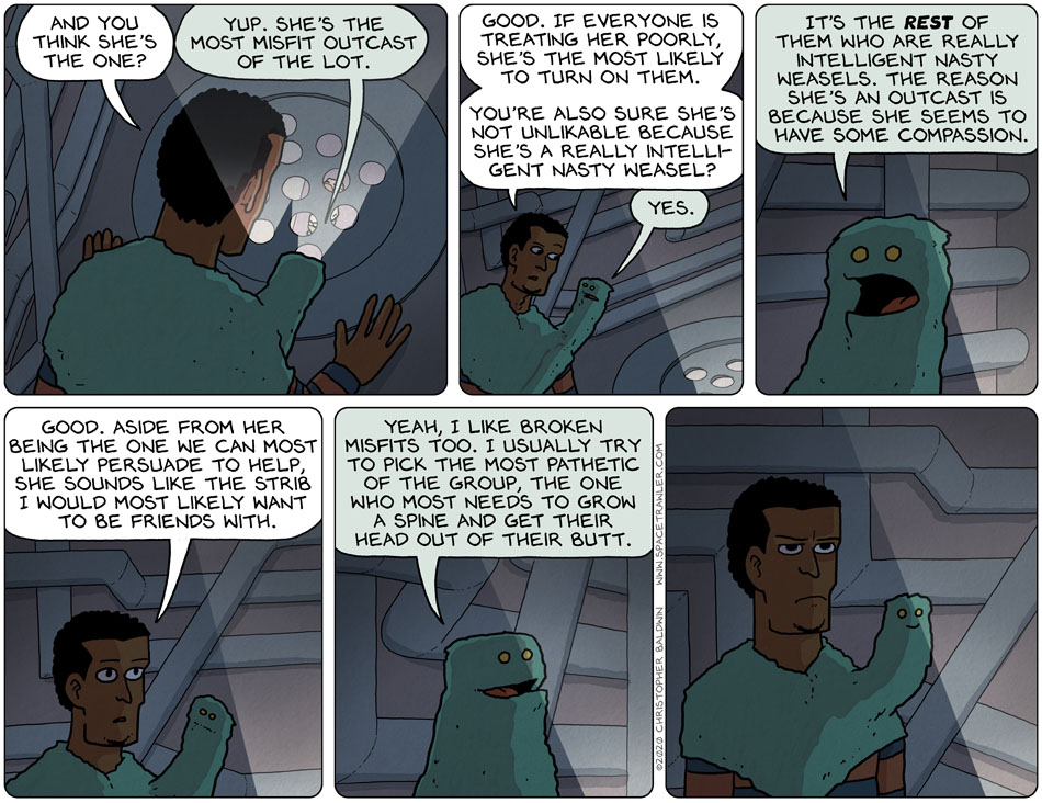 Christopher Baldwin, I mean, I’m always adoring the strip, but your quip about the crawl spaces made me laugh the laugh of science-fiction fan amongst her people 🙂