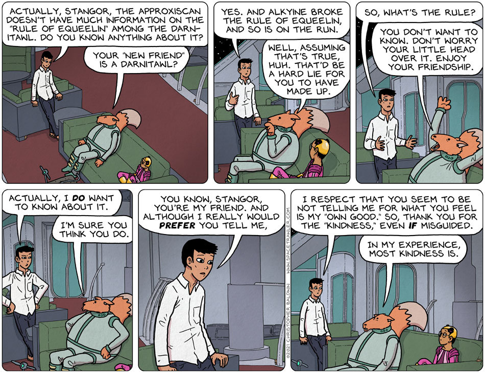 Chiphu demonstrates a greater amount of civilized behavior accepting Stangor’s tease even as he says he knows it for what it is. And we shall see, won’t we, if Stangor’s caution is more well-intentioned misguidance.