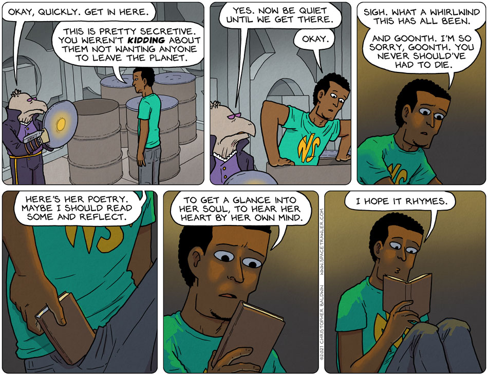Also, either Tesfay doesn’t understand “be quiet” or Chris doesn’t like thought balloons. Come to think of it, Chris, have you ever used thought balloons?