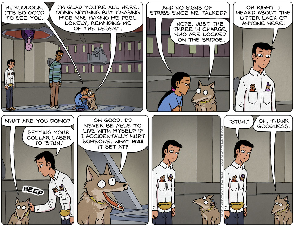 Just a note in passing: Should Ruddock trigger his laser and NOT cause Aitana to bounce two hundred meters out of range, that will prove she isn’t wearing even part of her armor on this trip. Word to the wise, and all that.