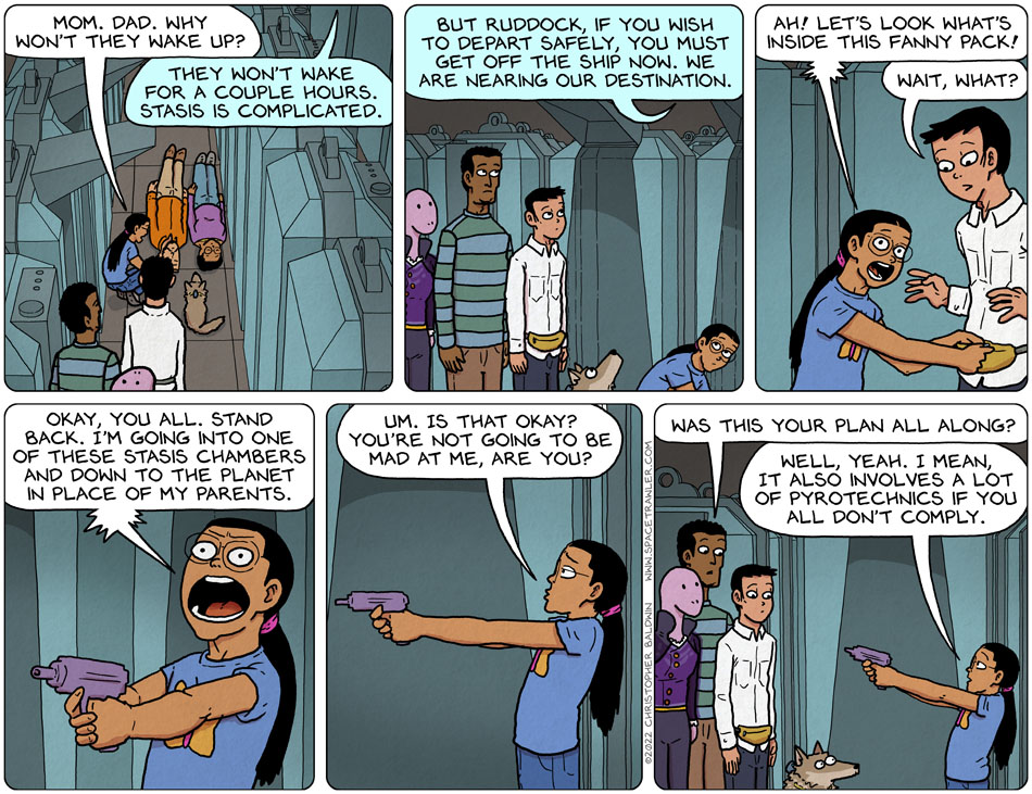 So if they’re willing to kill someone who was taken hostage against her will just to guard against the possibility of betrayal, then how do they possibly not just slag the whole ship that’s had random aliens doing who-knows-what to it? It’s not like they don’t have plenty more…