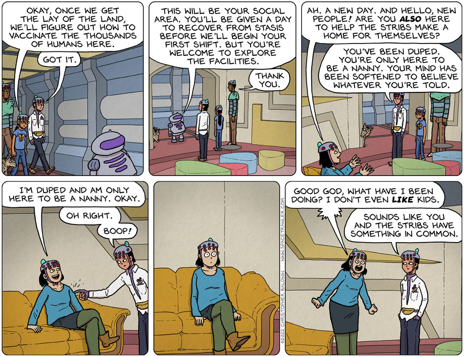 I wonder if ot eventualy goes the ruddock route and the stribs get oversized sentient bio-robott Mice that are conditioned to raise & enducate strib babies (puppies?)
