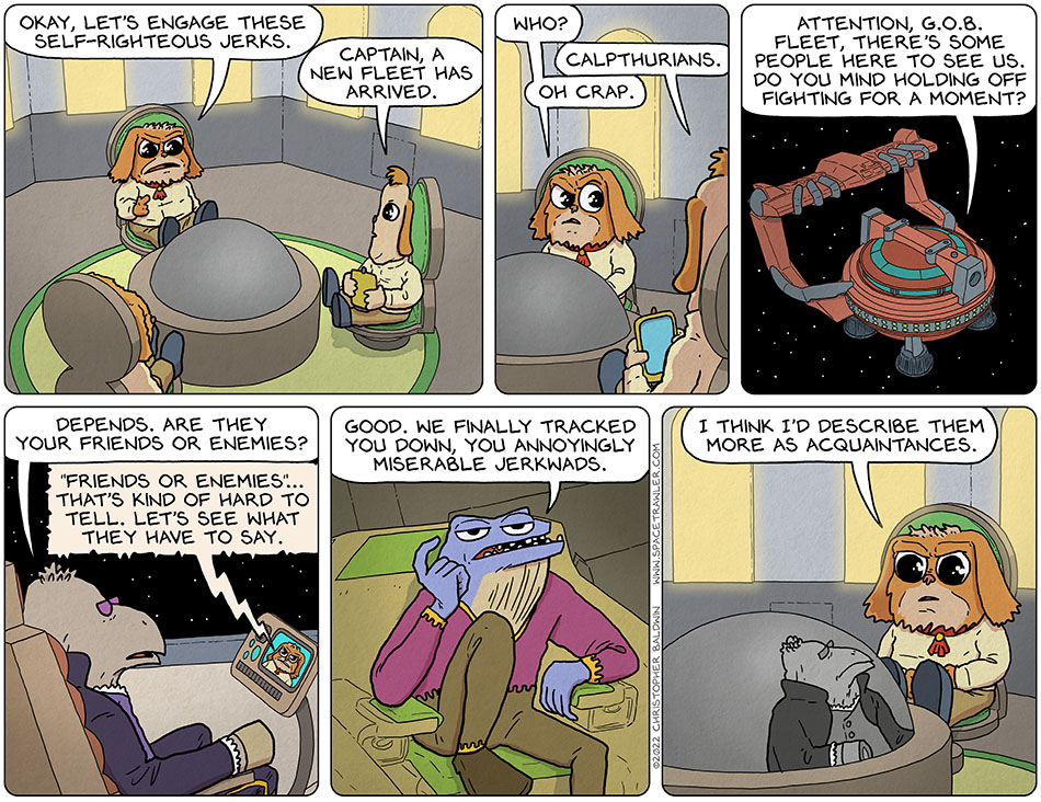 It’s probably a good thing Devyat is out of the picture now. Never mind how the Galaxy might react; her personal discovery of the nastiness that is the Stribs might make her question her own impulse to >phhhht!< them out of existence as perhaps overkill. I'd hate to see her go through that again.