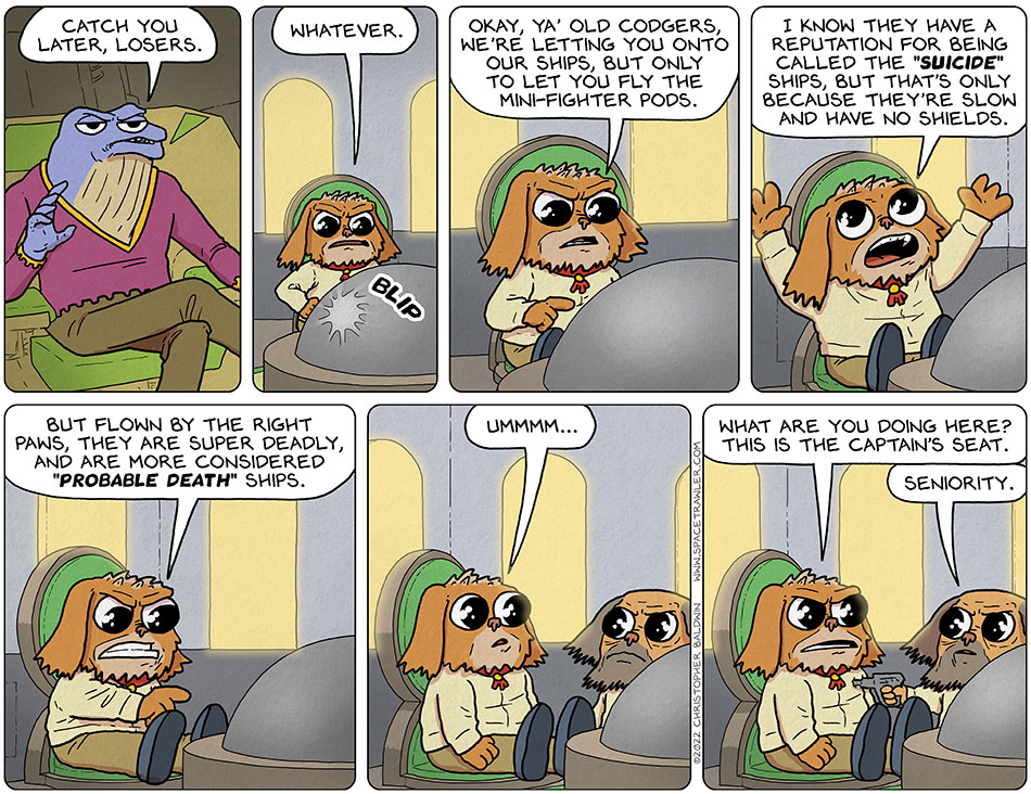 And also, in today’s strip, the leader of the Stribs says to the older stribs that “we are letting you on our ships.”