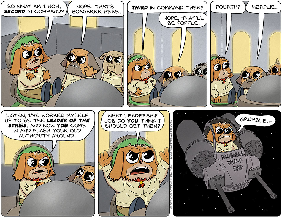 Huh.. this scale makes me wonder if ‘Strib’ is species, some particular clan/extended family, or some kind of subgroup like a bunch of rich yuppies… in which case seeing their actual government come in to clean up the diplomatic mess would be hilarious.
