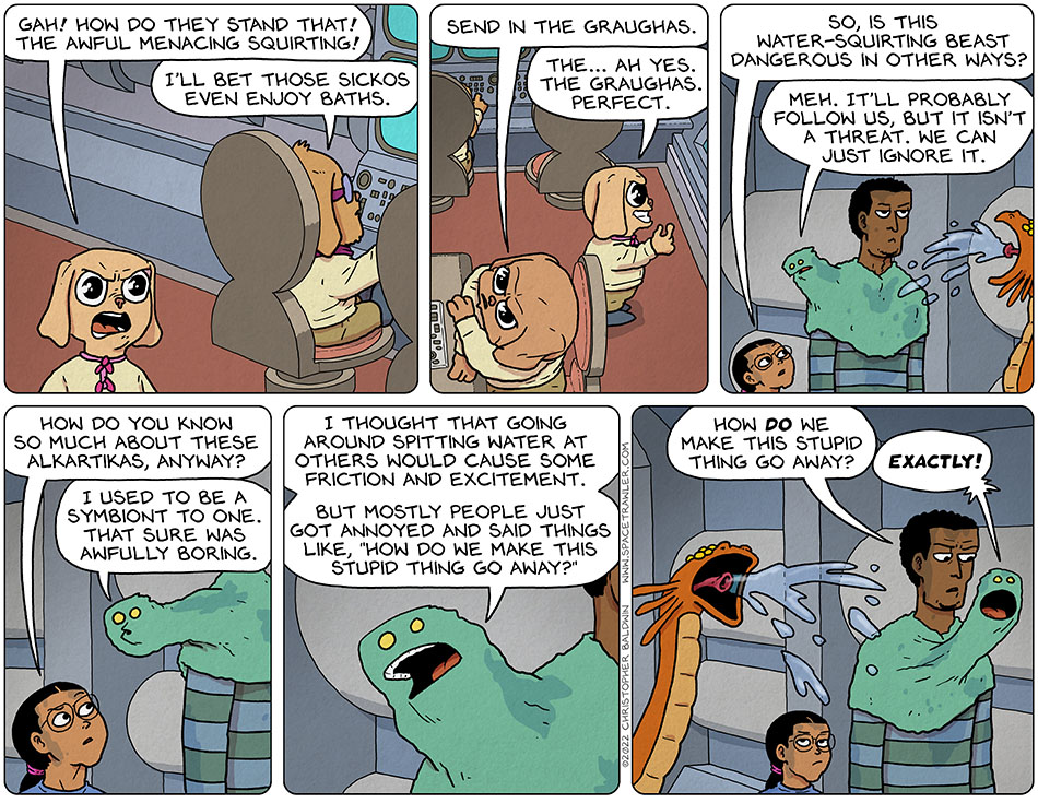 I’m very sorry I’m going to be unavailable for Wednesday’s and perhaps Friday’s strips. I am keenly interested in whatever else the Stribs think of as ‘horrible’ monsters. Keenly.
