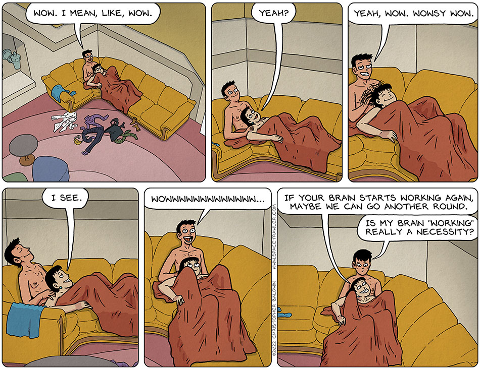 So we need to come up with other euphemisms to cover “this act” when “this act” happens in deep space. C’mon people! Let’s start thinking!