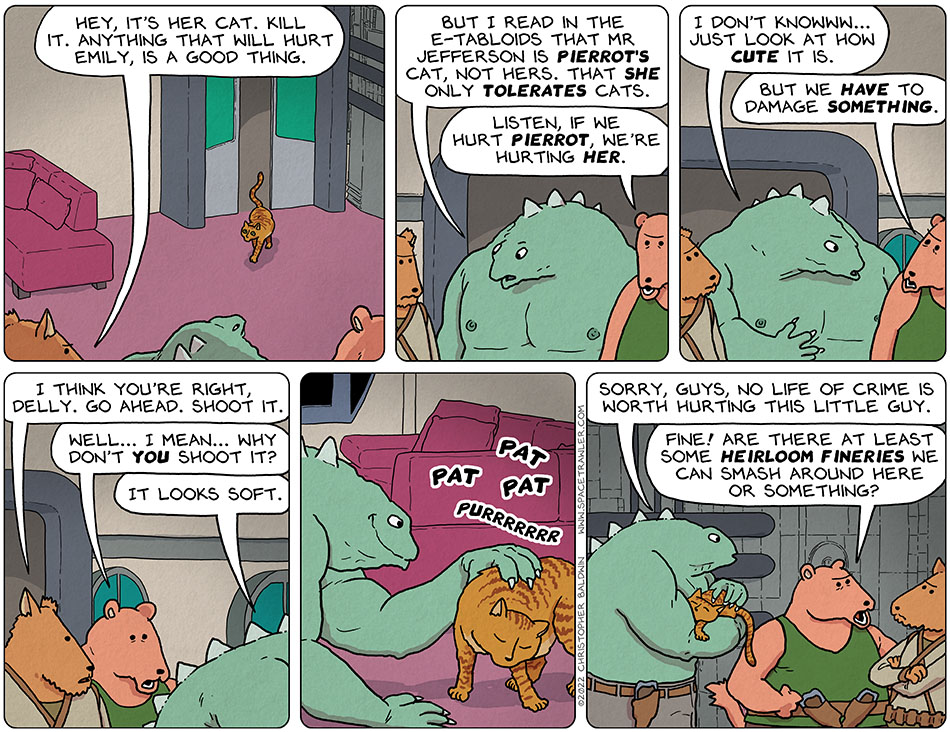 I put my foot down. “No cats!” said I.
