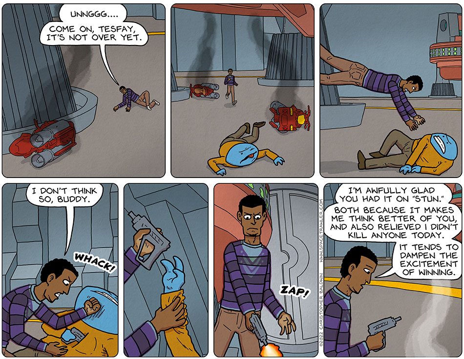 Also if that smoke in the last panel is rising from Blue Meanie’s body, then it might not have been “stun” actually.