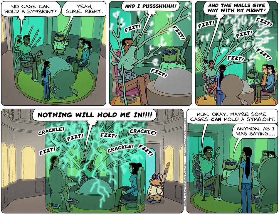Oh, NOW I see the symbiont’s finding the hole in the floor. Only took me three days to notice it.