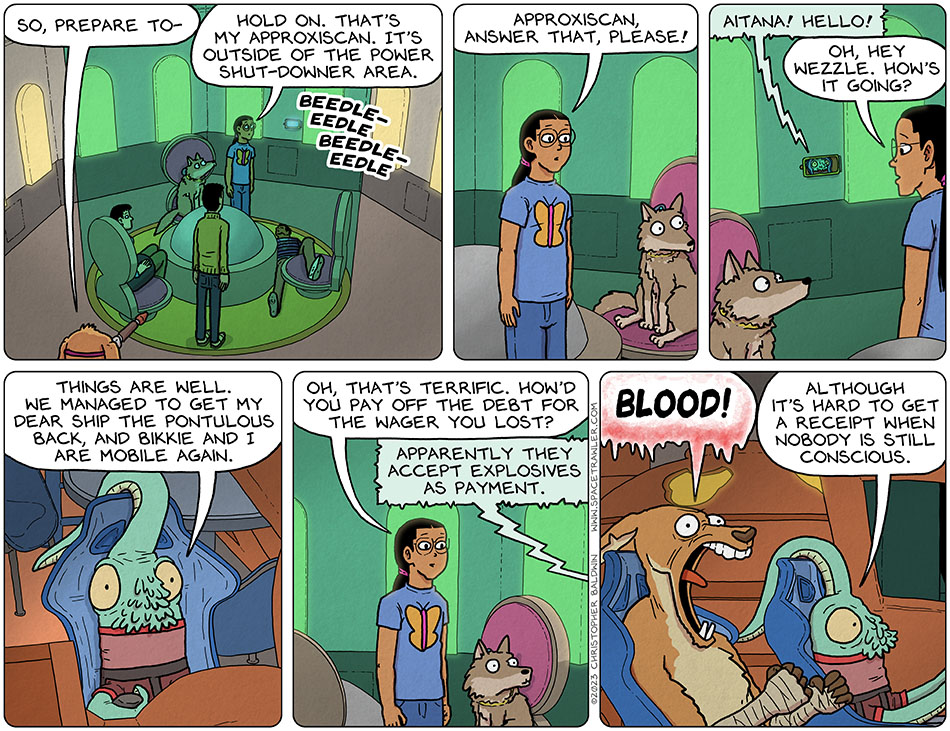 As to Bikkie and Wezzle’s reappearance…. I sense a Macropus ex machina coming up, and look forward to it greatly. Just let me get a new Vernors and roll tape!