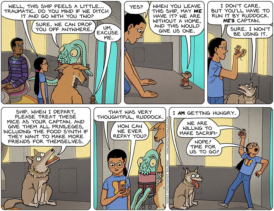 I notice that Ruddock didn’t make the mice collectively or that specific mouse *the captain*. He retained captaincy, they’ll just… be acting in loco parentis, for lack of a better term. I wonder if that means we’ll see either of them again… or if that’ll cause problems when and if Ruddock kicks it.