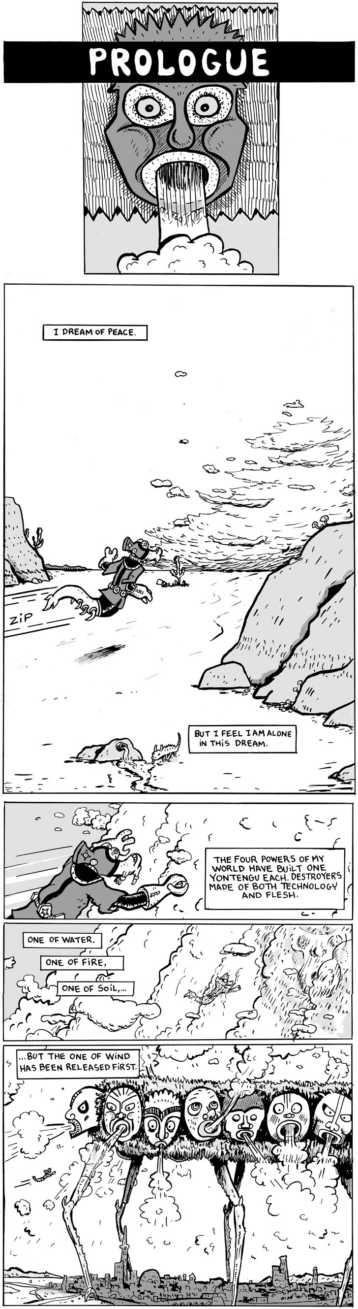 I’m intrigued. Hoping for something original and that it doesn’t come too close with a “Last Airbender” type storyline – cause I’m definitely getting an “Airbender” feeling here. Then again, it’s only the first strip so I could be completely mistaken.