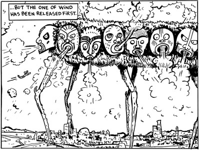Storywise, that the Yontengu could and indeed would kill everyone has been systematically built towards (even in the face of the “innocence” of the characters and drawing style). That this now occurred in terms of a visceral image (flooding) that we can intuitively understand also works well (to say the least). The reader is free to substitute “turning the continent into uninhabitable wasteland” presumably without affecting the flow of the story.