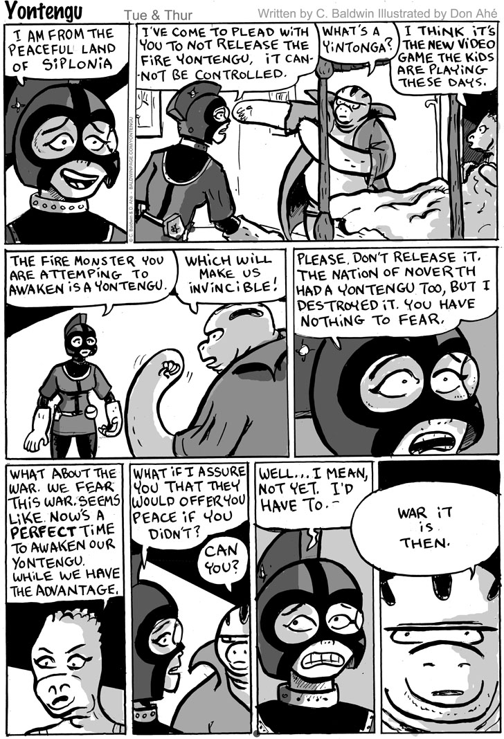 6 Comments 07/21/15 The Fire Yontengu 05 By Christopher Baldwin • July 21, 2015 Characters: Yontengu Hey! Great news. Don, illustrator of Yontengu, posted a new “Road Apples Almanac” strip, which is how I first got to know him through. He’s planning on one-a-month or so. I’ll link to them from here when he does.
